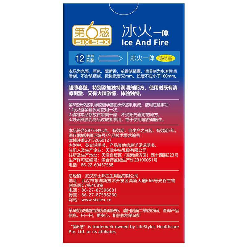 【避孕润滑】第6感冰火一体12片装
